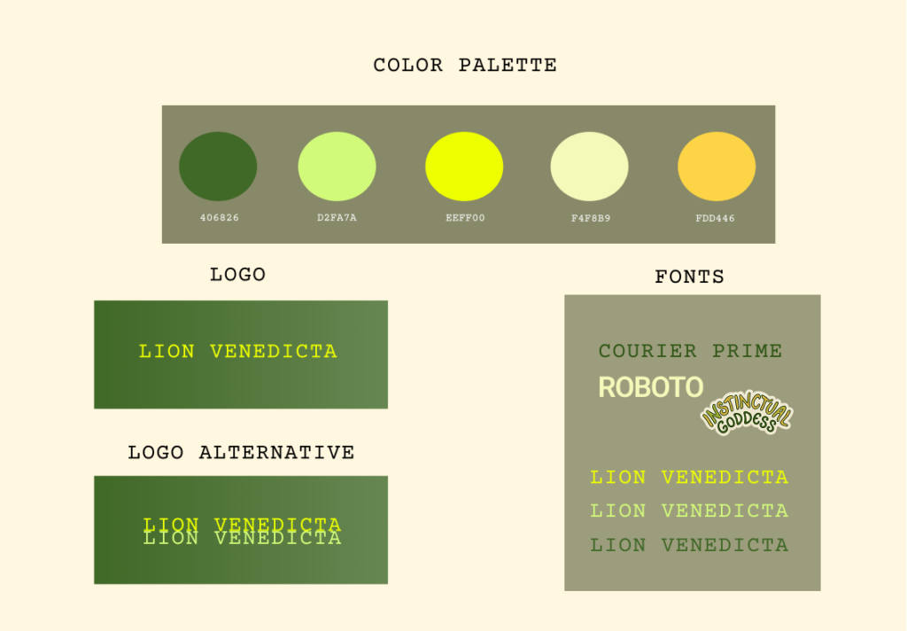 From this initial spark, the concept evolved into the brand name and logo as I drew inspiration from the Hindu goddess Durga and the sumerian goddess inanna associated with lions, fierceness, and protective power — figures who embody sovereignty, courage, and calm authority. The result is a fusion of earthy softness with mythic strength: a woman whose presence is powerful without needing to assert it, whose beauty is natural yet elevated, and whose energy is both approachable and awe-inspiring.